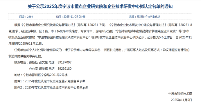 近日,寧波市2025年度擬認定市級重點企業研究院名單公示,中汽研汽車檢驗中心(寧波)有限公司(以下簡稱“公司”)憑借自身的技術實力成功躋身市級科創陣營,斬獲重點研究院殊榮——寧波市中汽研機動車產品檢測技術及裝備重點企業研究院,標志著公司在汽車檢測領域科研能力獲市級權威認可。