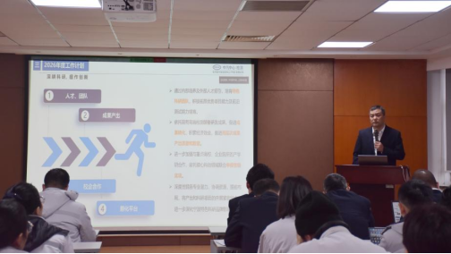 隨后,會議聚焦公司高質量發展的核心引擎—科技創新,報告系統全面回顧了2025年度公司在科創領域的奮進歷程與突破性進展。在科創體系建設上,完善了跨部門協同創新機制與科研管理制度;在創新能力構建上,以“技術攻關+標準構建+成果轉化+人才培育”為核心定位構建科創能力新平臺。同時,明確了2026年科研工作的核心方向與關鍵策略,重點圍繞核心技術攻堅,錨定行業前沿與卡脖子領域集中發力,以創新驅動公司實現高質量、可持續發展。