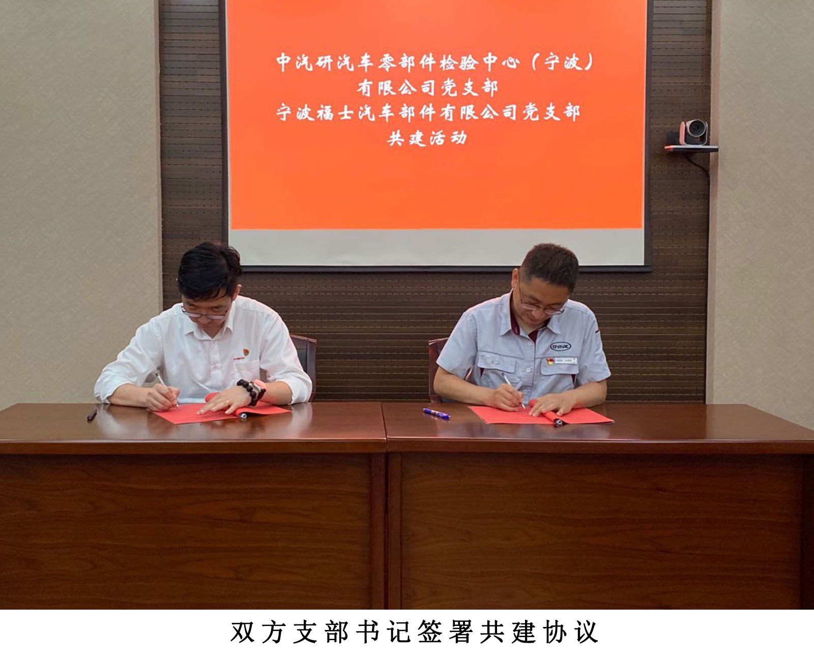 寧波汽車(chē)檢測(cè)中心黨總支下屬的中汽研汽車(chē)零部件檢驗(yàn)中心(寧波)有限公司黨支部(簡(jiǎn)稱(chēng)寧波鄞州中心黨支部)與寧波福士汽車(chē)部件有限公司黨支部開(kāi)展黨建共建活動(dòng)。