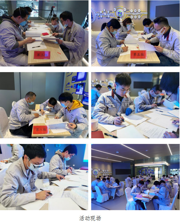 質(zhì)量比武正式開始。參賽選手分為八個(gè)小組,各小組需在案例報(bào)告中找出問題并記錄,在限定時(shí)間內(nèi),最終糾錯(cuò)最多的小組獲勝。比賽過程中,參賽選手沉著冷靜、分秒不讓,耐心審查每一處細(xì)節(jié),不放過案例報(bào)告中的任何一個(gè)紕漏。最終,第一組(應(yīng)宇驥、裘磊波、高鵬、韓浩威)和第八組(許堅(jiān)、王科、易成亮)取得并列第一的成績(jī),第六組(劉珈瑋、李飛、楊冬冬)位列第三名。