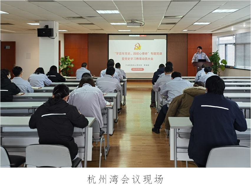 會議傳達了中汽中心黨委、檢測認證事業部黨委關于黨史學習教育工作部署要求,宣讀了《寧波檢驗中心黨總支關于開展黨史學習教育的工作方案》,對寧波檢驗中心黨史學習教育進行全面動員部署安排。