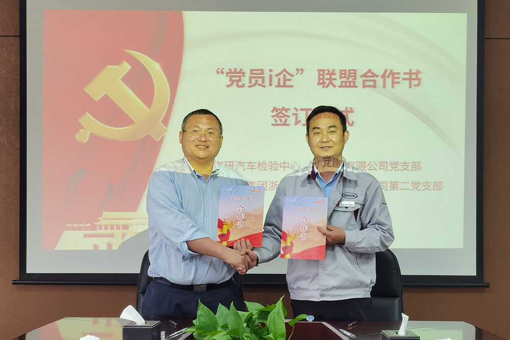 為充分發揮黨建引領作用,構建黨建經營雙向促進長效機制,2021年4月1日,中汽中心檢測認證事業部寧波檢驗中心黨總支寧波檢驗公司黨支部與中國移動通信集團浙江有限公司慈溪分公司第二黨支部舉行黨建共建簽約儀式。