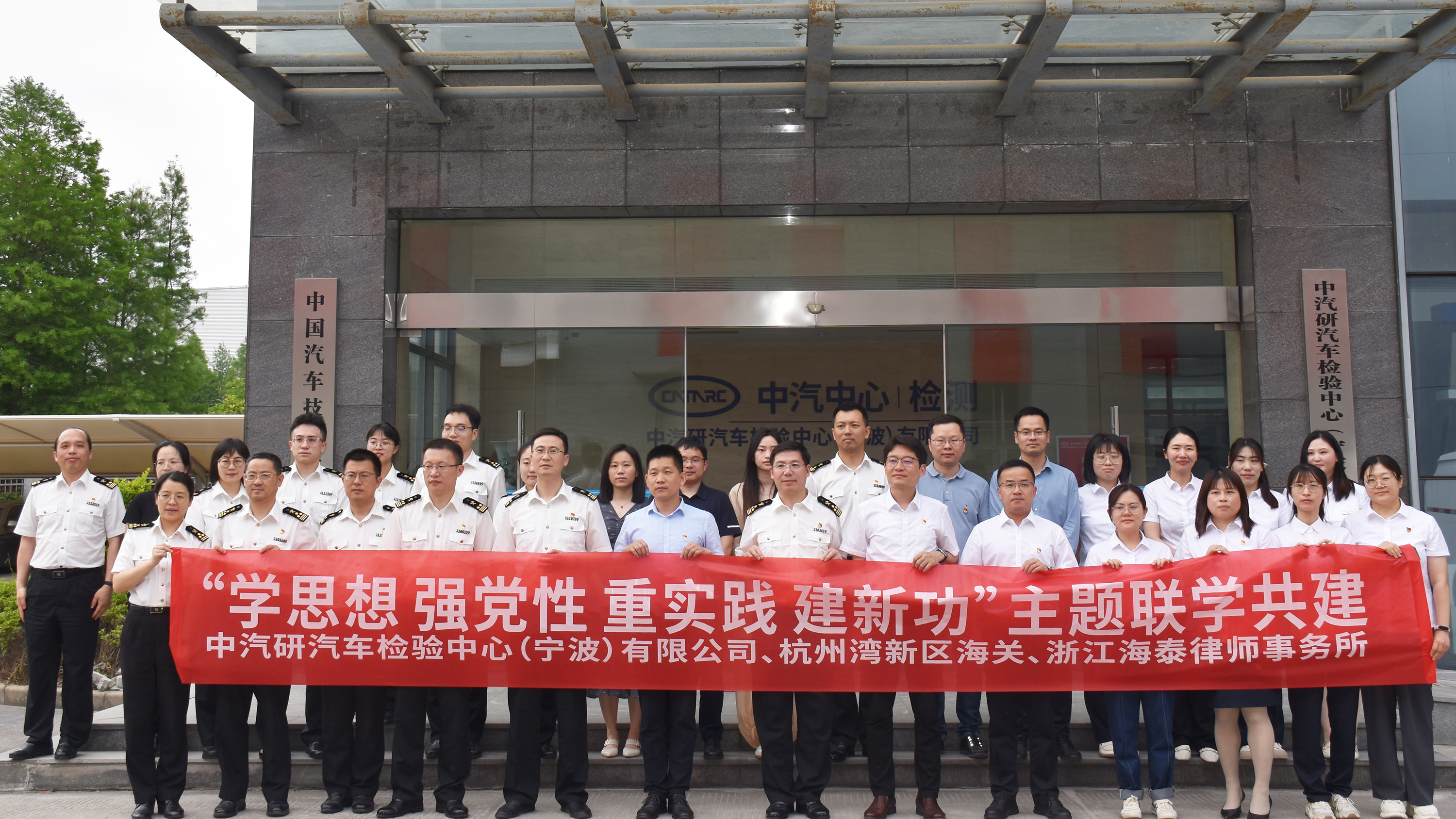 活動伊始,杭州灣新區海關、浙江海泰律師事務所20余人參觀寧波檢驗中心試驗室并觀看碰撞試驗,了解寧波檢驗中心試驗能力及專業水平。參觀結束后各方代表參加專題聯學,共同學習《習近平關于全面依法治國重要論述》。
