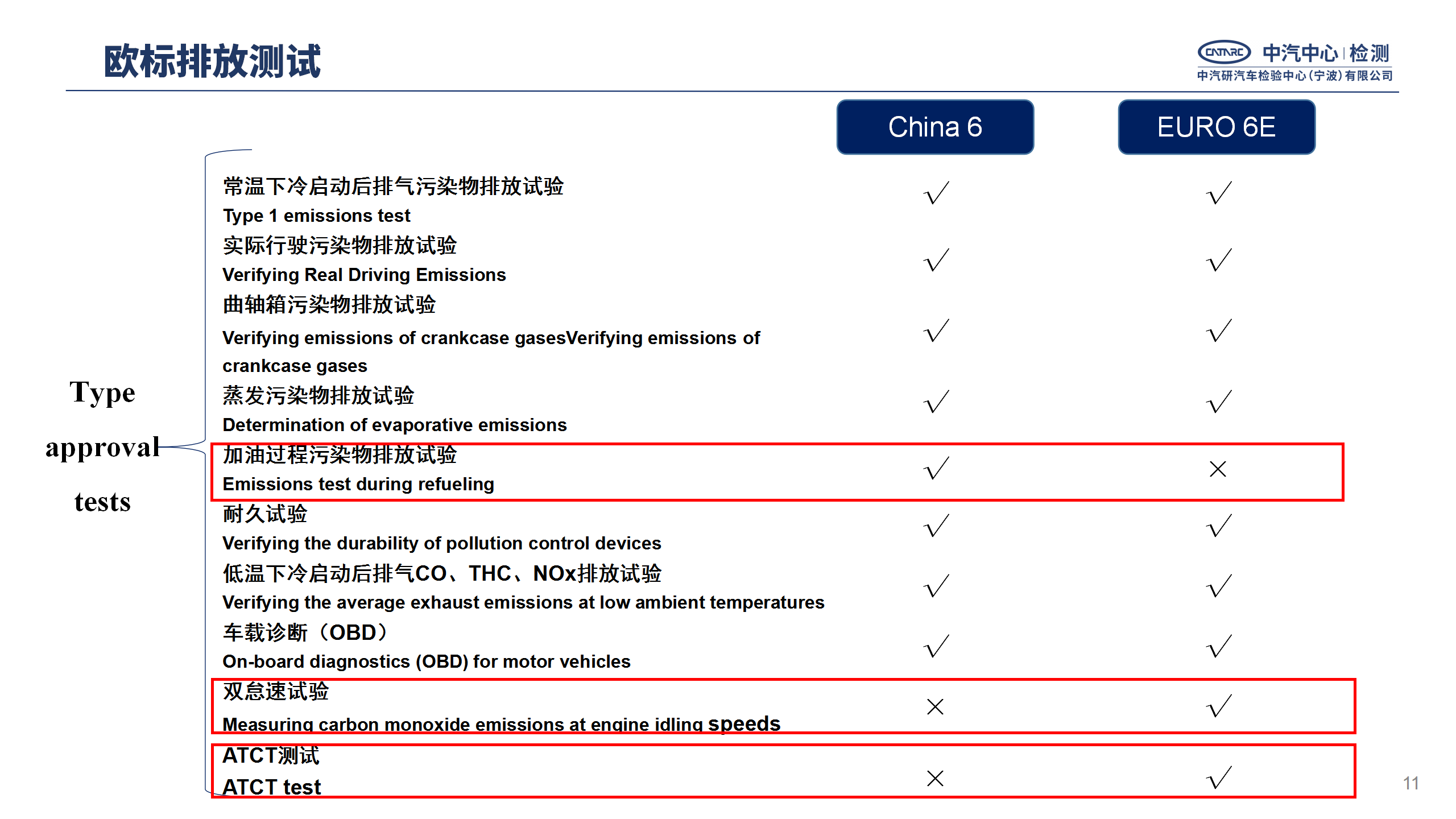 該法規(guī)對(duì)I型、ATCT、RDE以及蒸發(fā)污染物排放試驗(yàn)等方面的要求相比于