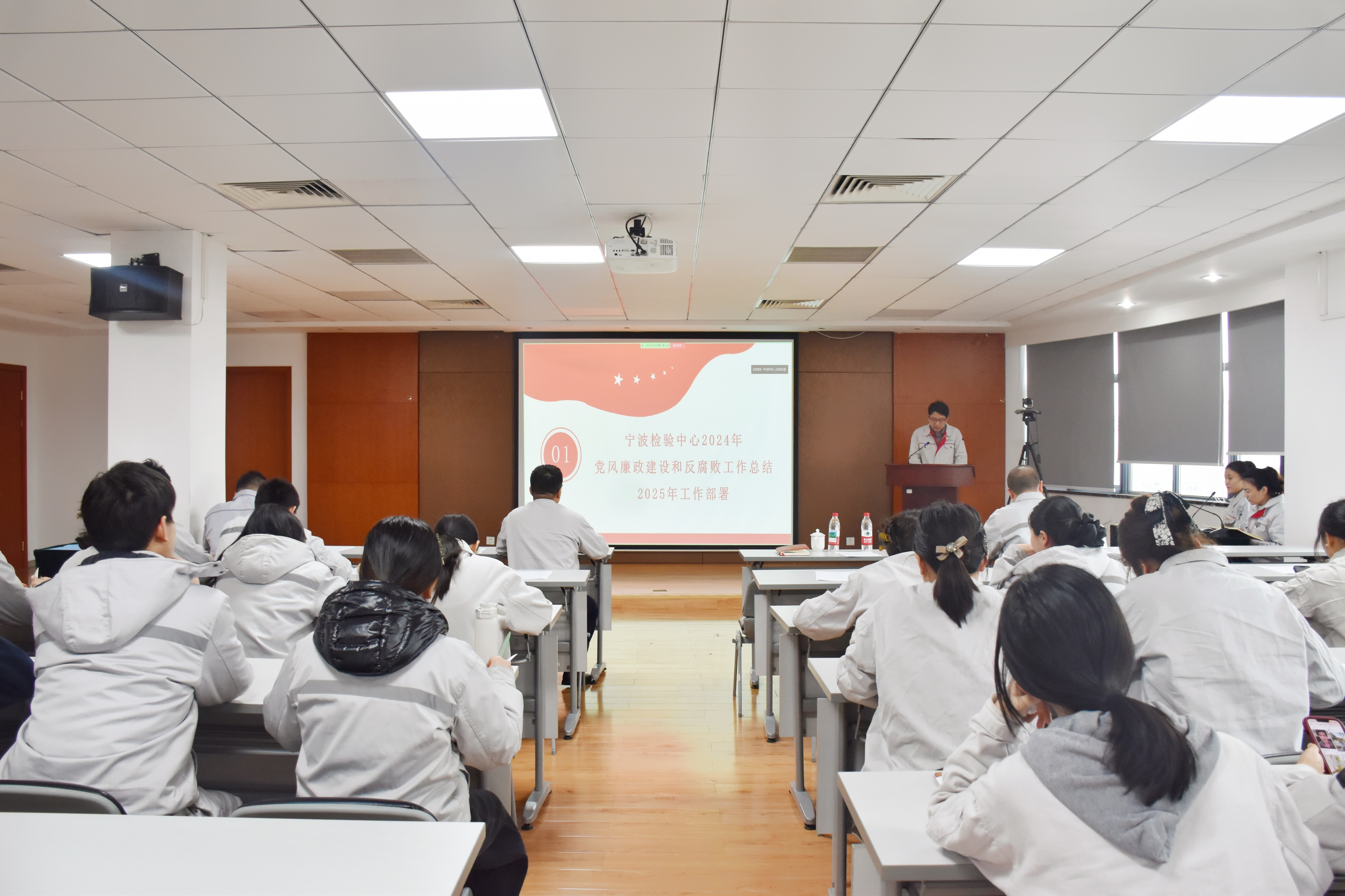 2025年3月5日,寧波檢驗中心召開2025年度黨風廉政建設和反腐敗工作會議暨警示教育大會。寧波檢驗中心黨總支書記、副總經理(主持工作)郭勇,寧波檢驗中心黨總支委員、副總經理朱曉勇參加本次大會。