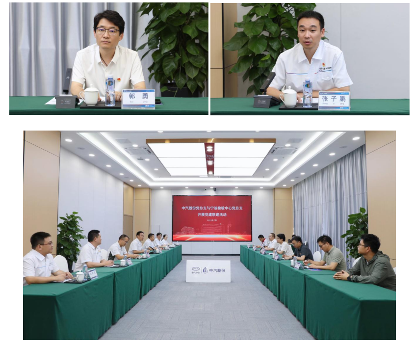 為深化黨建聯(lián)學(xué)共建,夯實作風(fēng)建設(shè)基礎(chǔ),著力構(gòu)建黨建與業(yè)務(wù)互融互促的良好格局,7月22日,寧波檢驗中心黨總支與中汽股份黨總支開展了黨建聯(lián)建活動。寧波檢驗中心黨總支書記、總經(jīng)理郭勇,中汽股份黨總支書記、總經(jīng)理張子鵬及雙方黨員代表參加了本次黨建聯(lián)建活動。