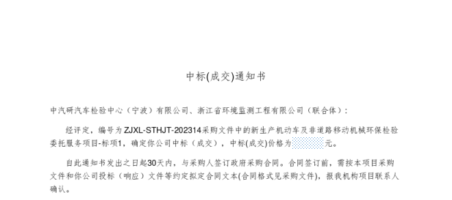 寧波檢驗中心中標浙江省新生產機動車及非移機械環保檢驗項目